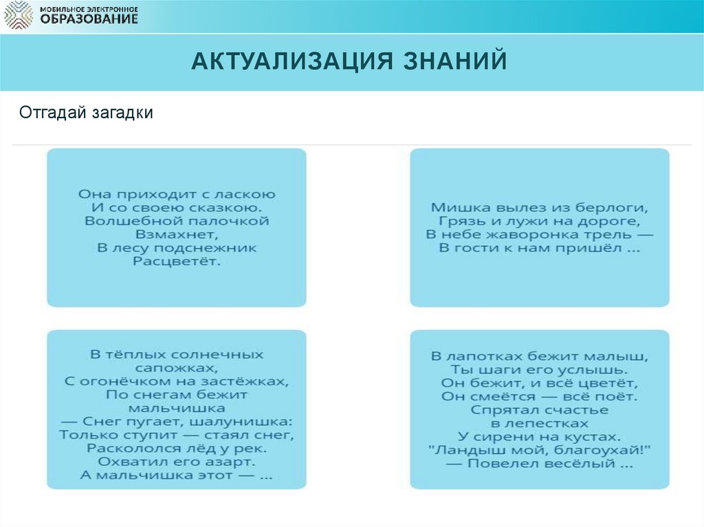 АКТУАЛИЗАЦИЯ ЗНАНИЙОтгадай загадки