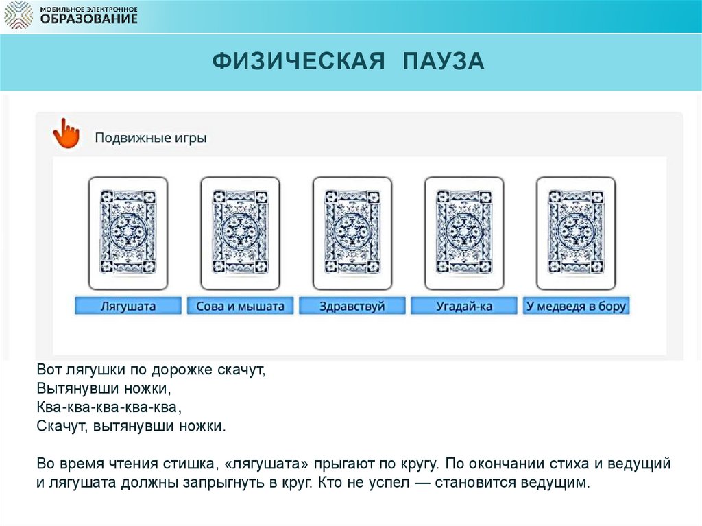 и лягушата должны запрыгнуть в круг. Кто не успел — становится ведущим.