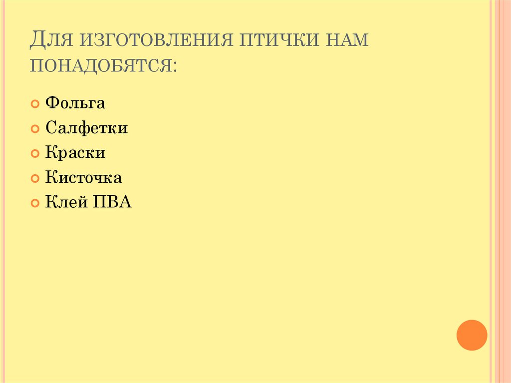 ДЛЯ ИЗГОТОВЛЕНИЯ ПТИЧКИ НАМПОНАДОБЯТСЯ:
