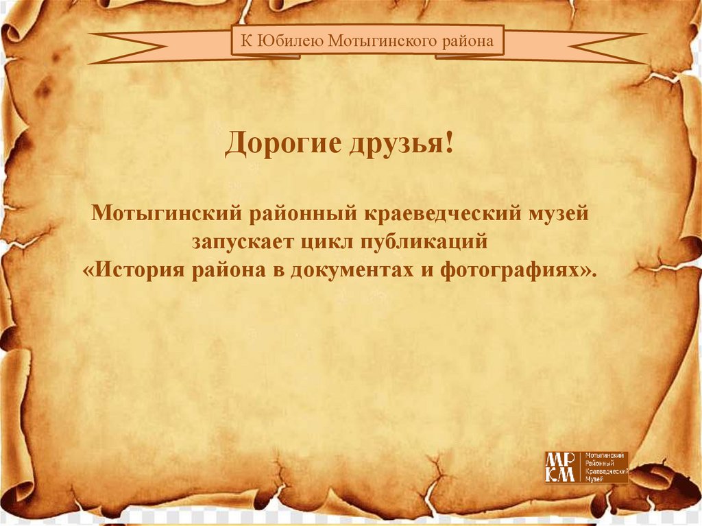 К Юбилею Мотыгинского районаДорогие друзья!