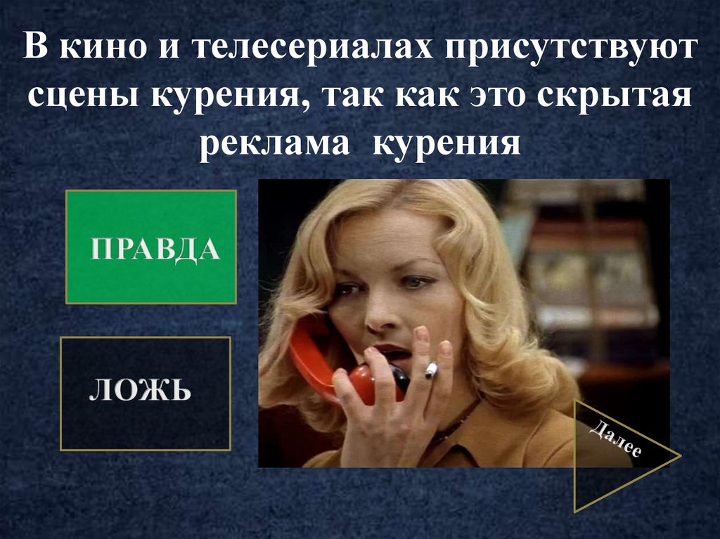 В кино и телесериалах присутствуютсцены курения, так как это скрытая