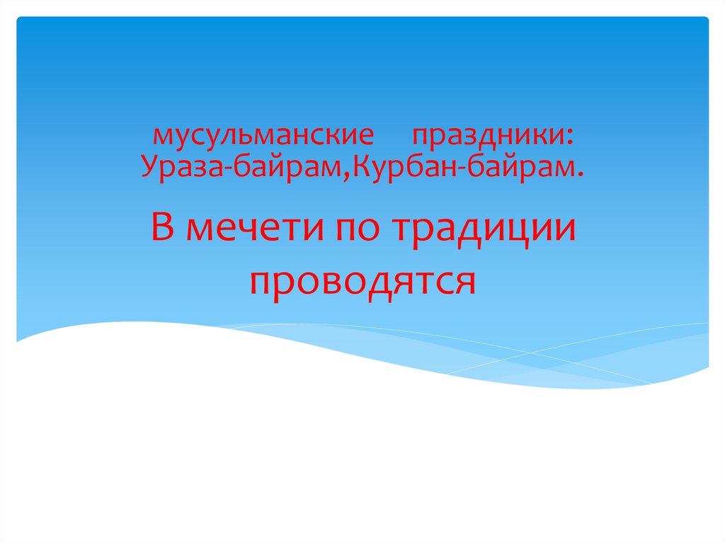 мусульманские праздники:Ураза-байрам,Курбан-байрам.