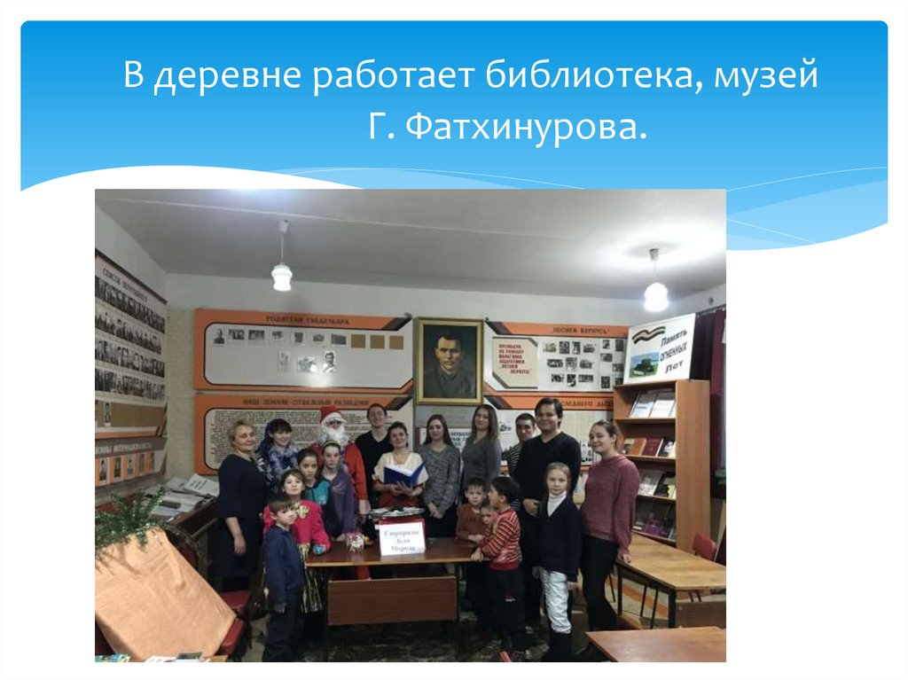 В деревне работает библиотека, музейГ. Фатхинурова.