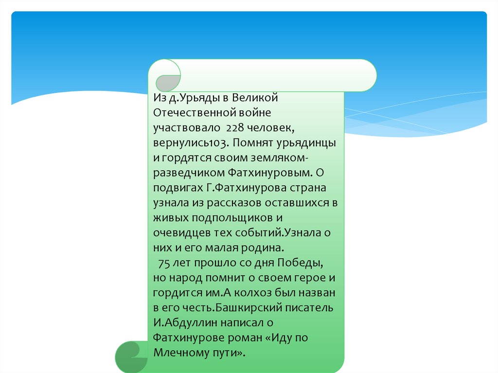 и гордятся своим землякомразведчиком Фатхинуровым. О