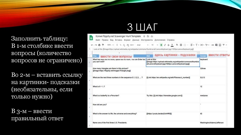 • Щелкните ссылку Flippity.net, чтобы просмотреть своё
