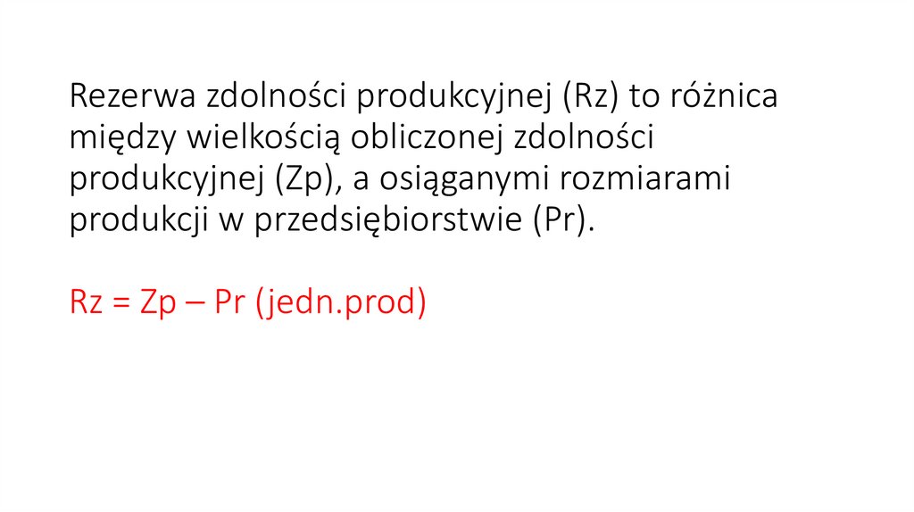 Rezerwa zdolności produkcyjnej (Rz) to różnicamiędzy wielkością obliczonej zdolności
