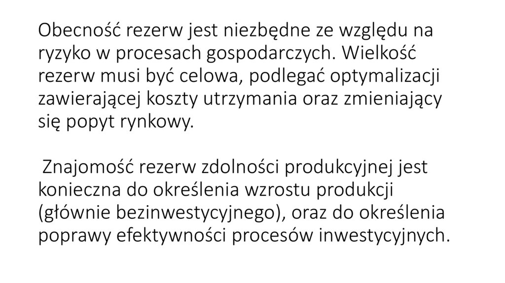 Obecność rezerw jest niezbędne ze względu naryzyko w procesach gospodarczych. Wielkość