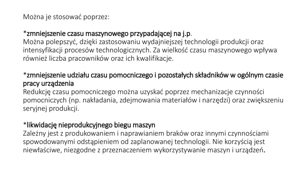 Można je stosować poprzez:*zmniejszenie czasu maszynowego przypadającej na j.p.