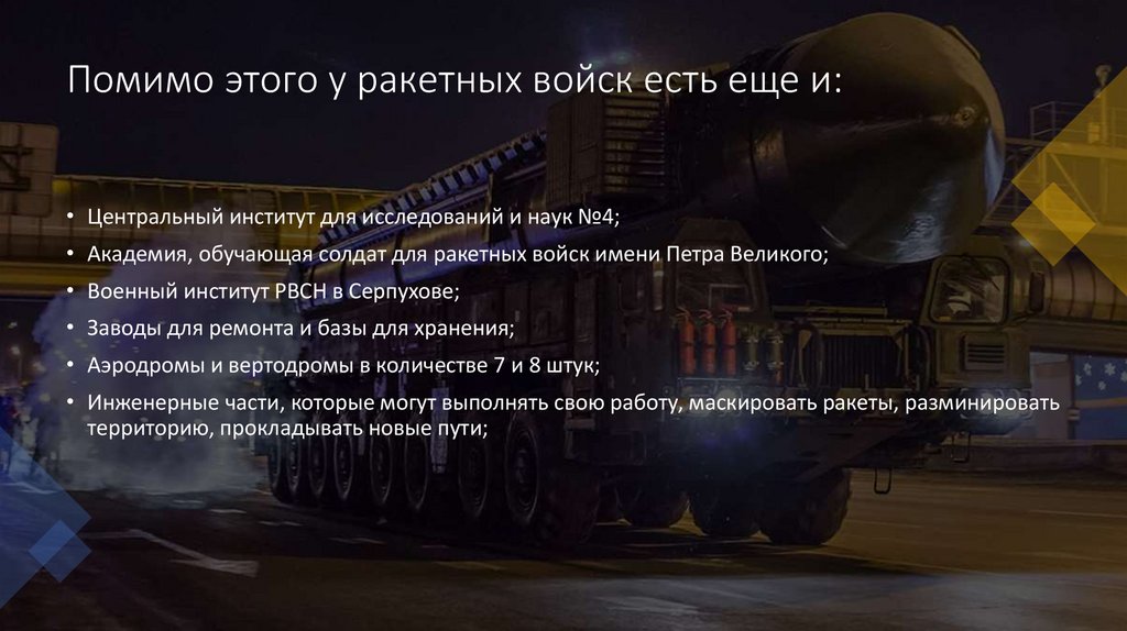 Помимо этого у ракетных войск есть еще и:• Центральный институт для исследований и наук №4;