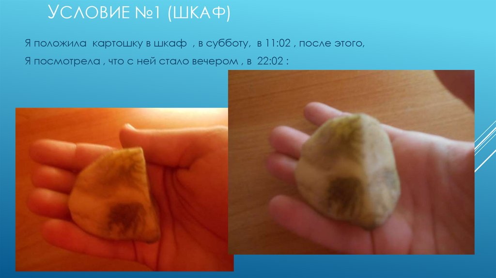 УСЛОВИЕ №1 (ШКАФ)Я положила картошку в шкаф , в субботу, в 11:02 , после этого,