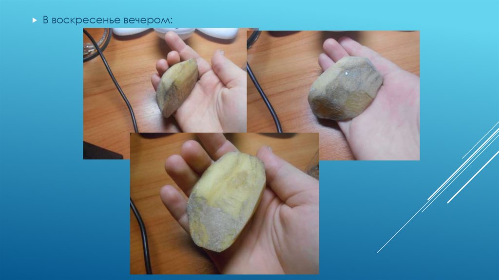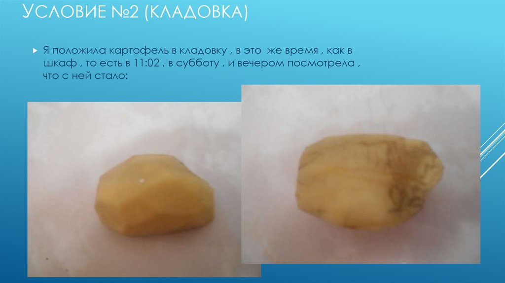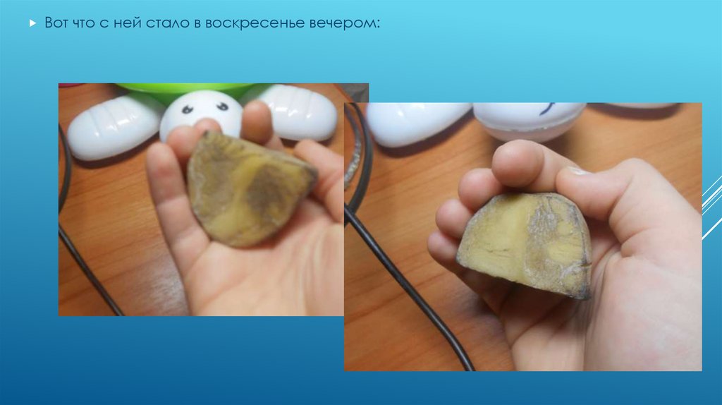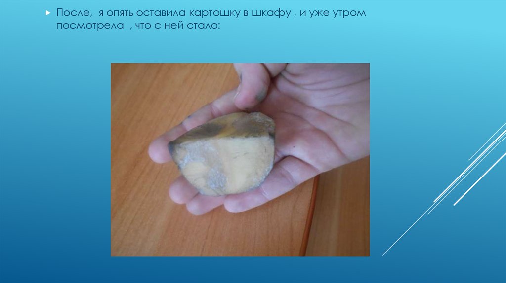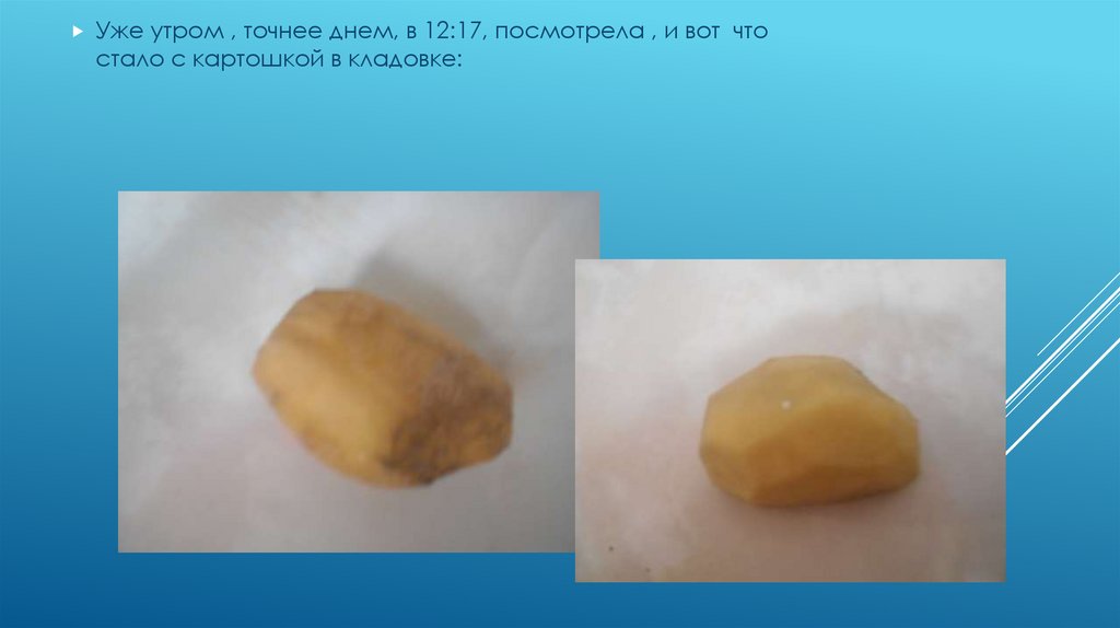 После, я опять оставила картошку в шкафу , и уже утромпосмотрела , что с ней стало: