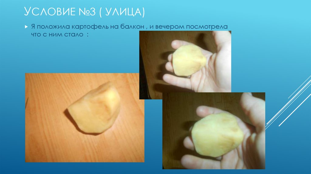 УСЛОВИЕ №3 ( УЛИЦА)Я положила картофель на балкон , и вечером посмотрела