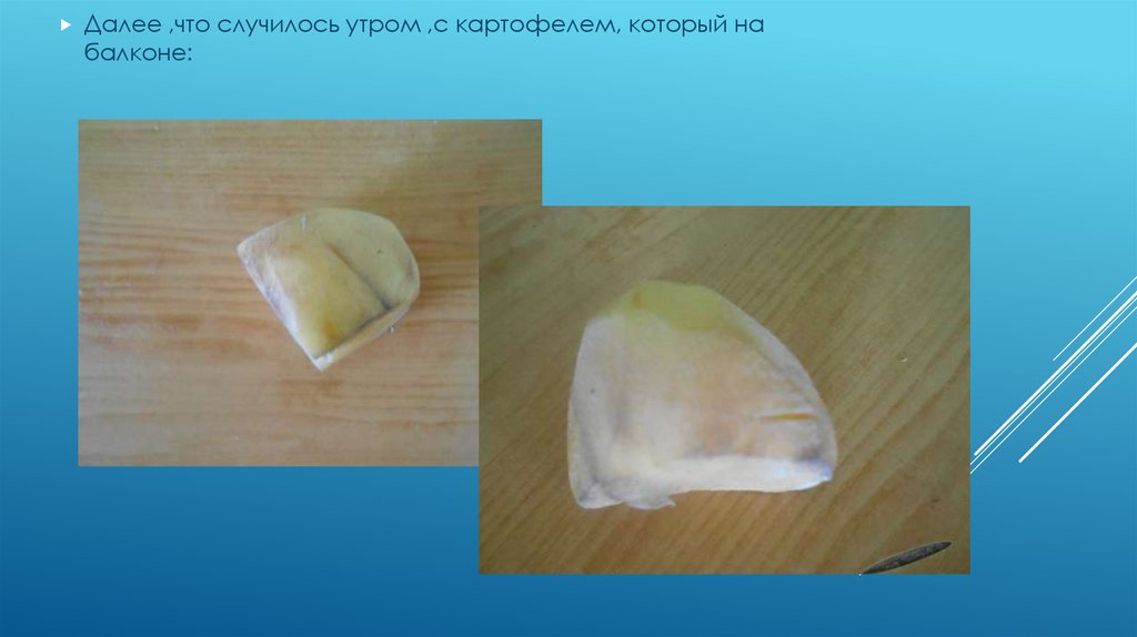 Далее ,что случилось утром ,с картофелем, который набалконе: