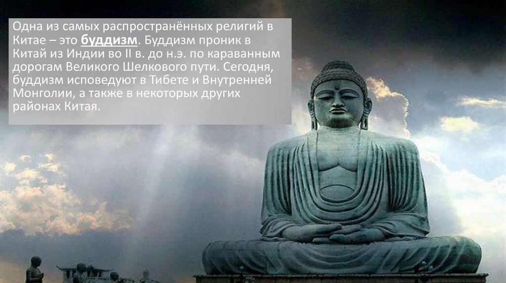 Одна из самых распространённых религий вКитае – это буддизм. Буддизм проник в