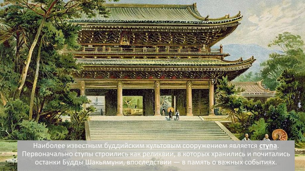 Наиболее известным буддийским культовым сооружением является ступа.Первоначально ступы строились как реликвии, в которых хранились и почитались