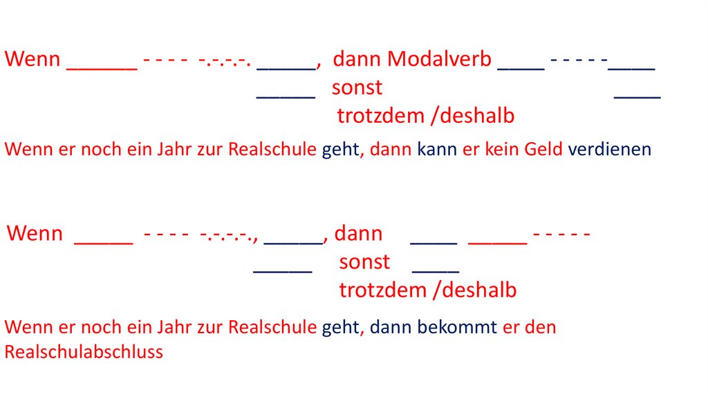 Wenn ______ - - - - -.-.-.-. _____, dann Modalverb ____ - - - - -_________ sonst