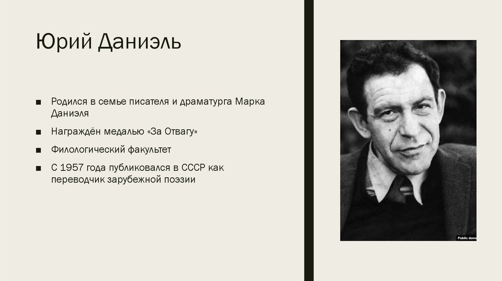 Юрий Даниэль■ Родился в семье писателя и драматурга Марка