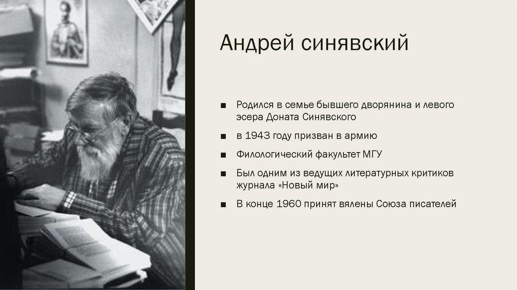 Андрей синявский■ Родился в семье бывшего дворянина и левого