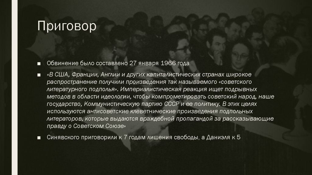 ■ Синявского приговорили к 7 годам лишения свободы, а Даниэля к 5