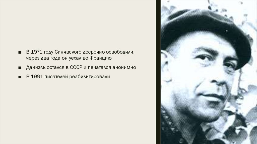 ■ В 1971 году Синявского досрочно освободили,через два года он уехал во Францию