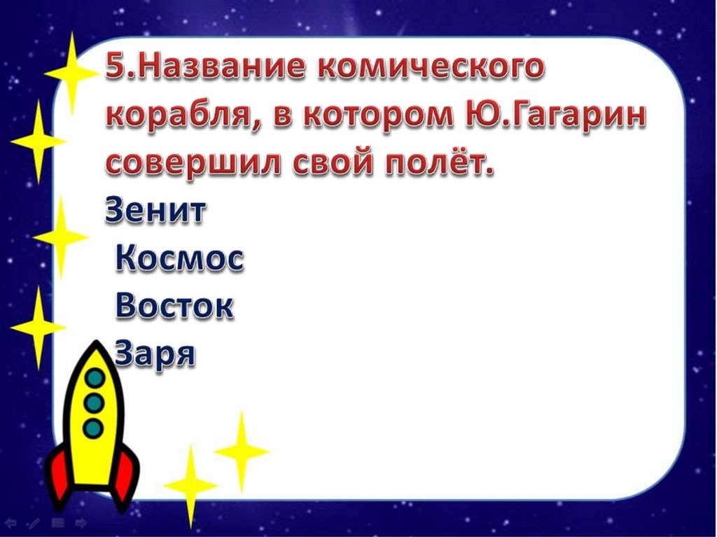 Космическое виртуальное путешествие "Космос - планета - мы!". Викторина