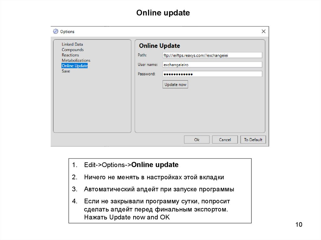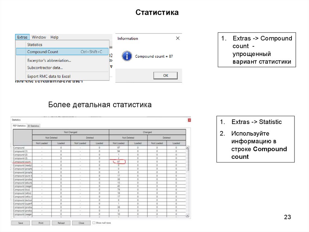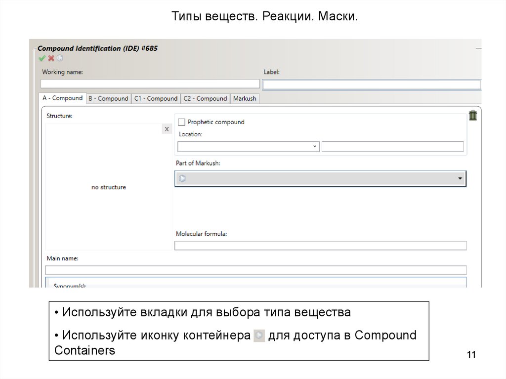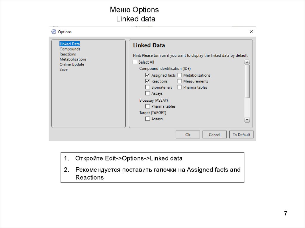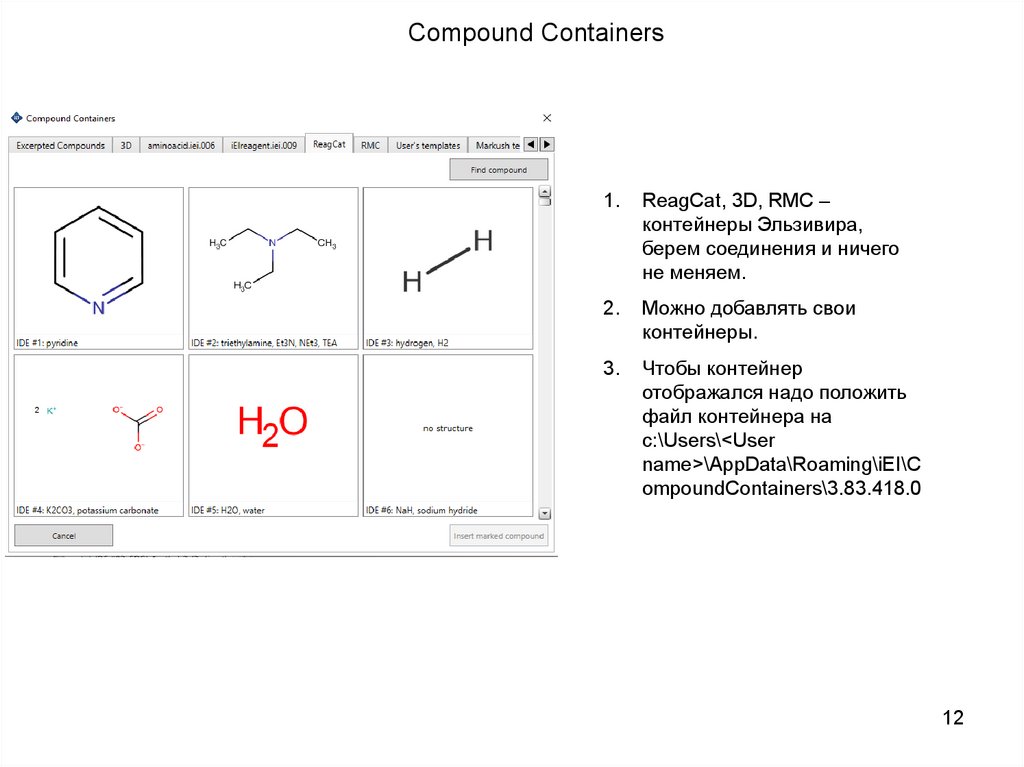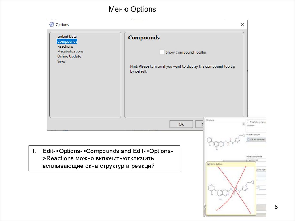 Меню Options1. Edit->Options->Compounds and Edit->Options>Reactions можно включить/отключить