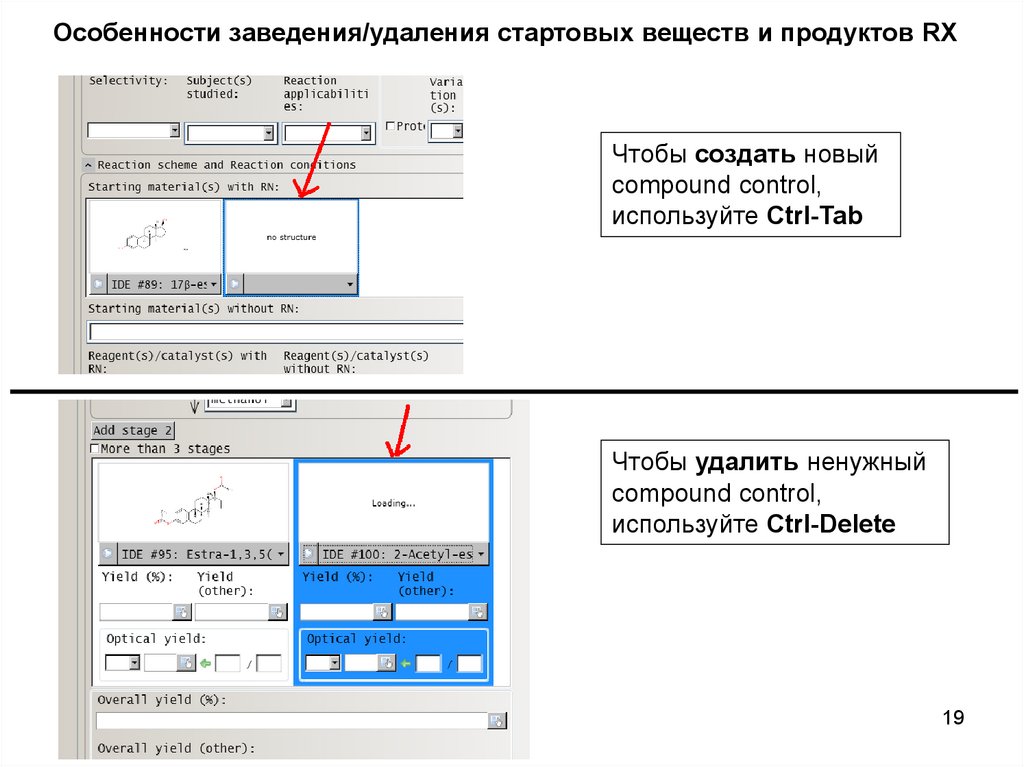 Особенности заведения/удаления стартовых веществ и продуктов RXЧтобы создать новый