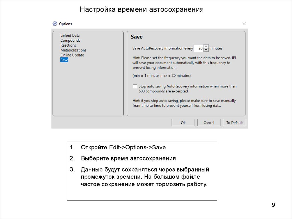 Настройка времени автосохранения1. Откройте Edit->Options->Save