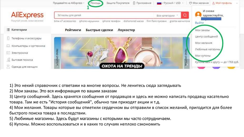 1) Это некий справочник с ответами на многие вопросы. Не ленитесь сюда заглядывать2) Мои заказы. Это вся информация по вашим заказам