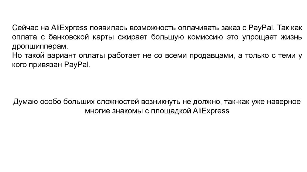 Сейчас на AliExpress появилась возможность оплачивать заказ с PayPal. Так какоплата с банковской карты сжирает большую комиссию это упрощает жизнь
