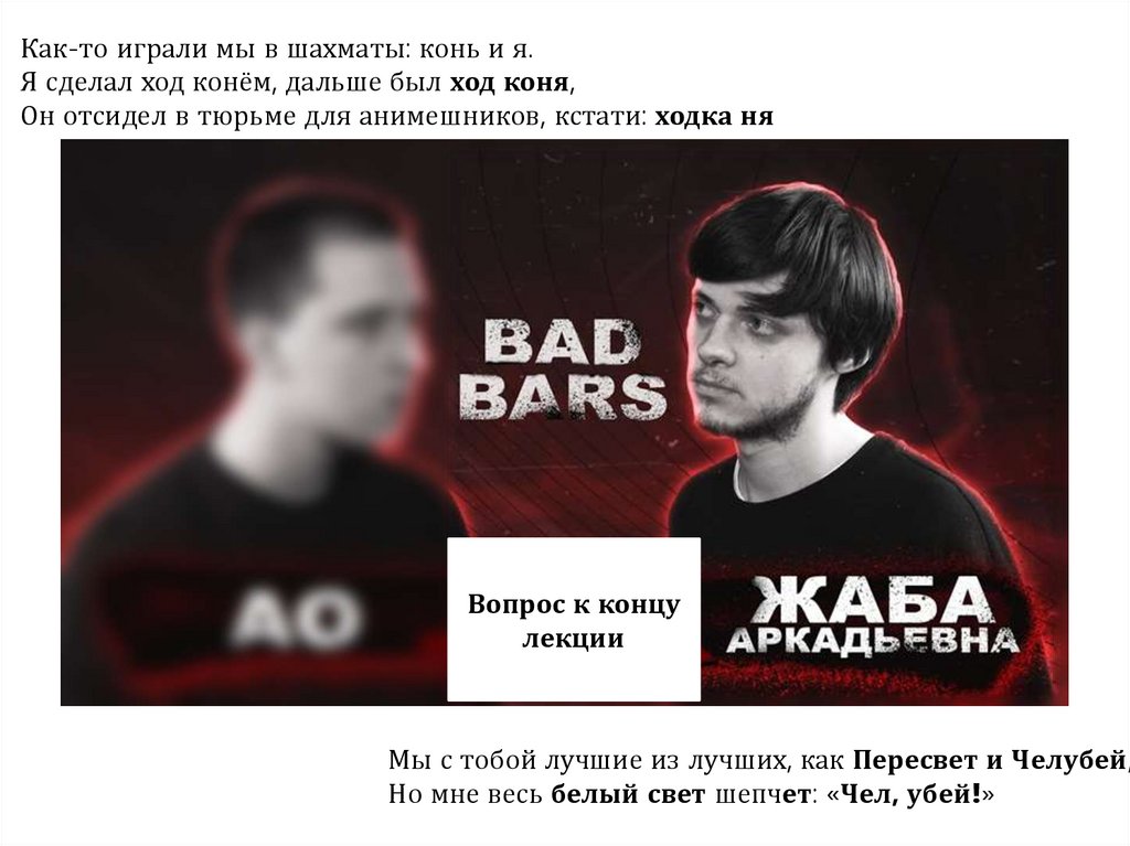Но мне весь белый свет шепчет: «Чел, убей!»