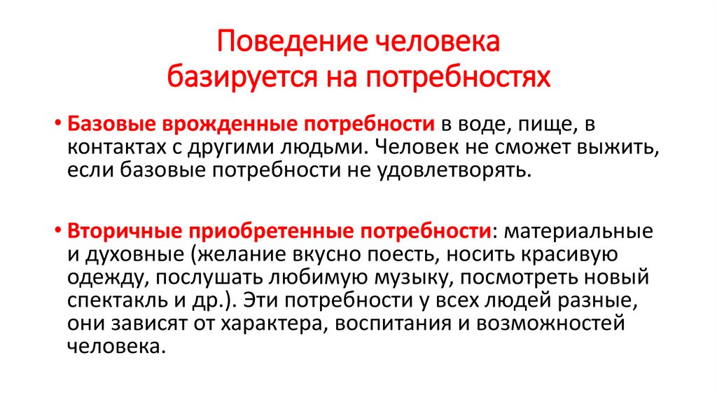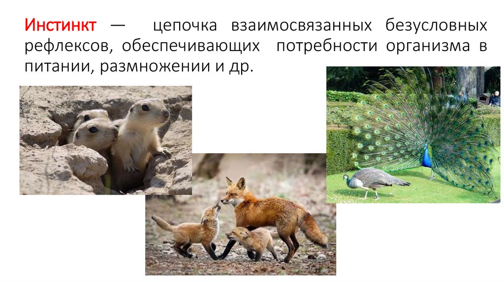 Инстинкт — цепочка взаимосвязанных безусловныхрефлексов, обеспечивающих потребности организма в