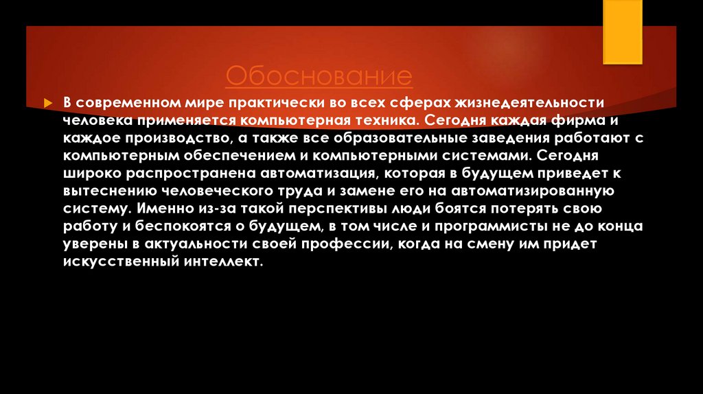 ОбоснованиеВ современном мире практически во всех сферах жизнедеятельности