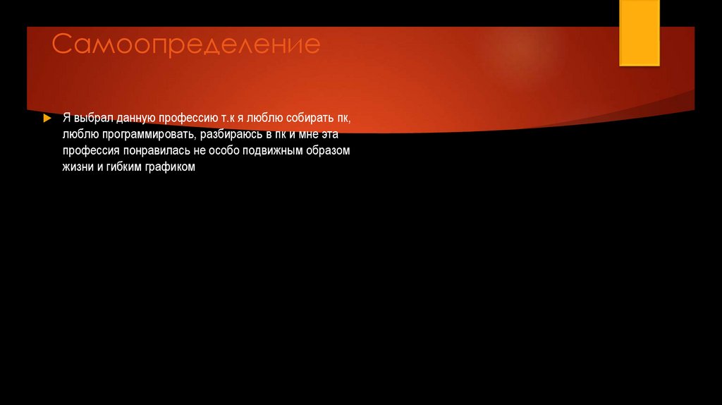 СамоопределениеЯ выбрал данную профессию т.к я люблю собирать пк,