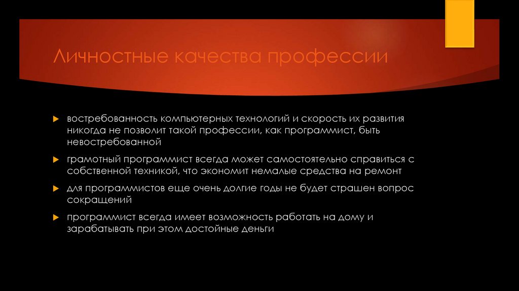 Личностные качества профессиивостребованность компьютерных технологий и скорость их развития