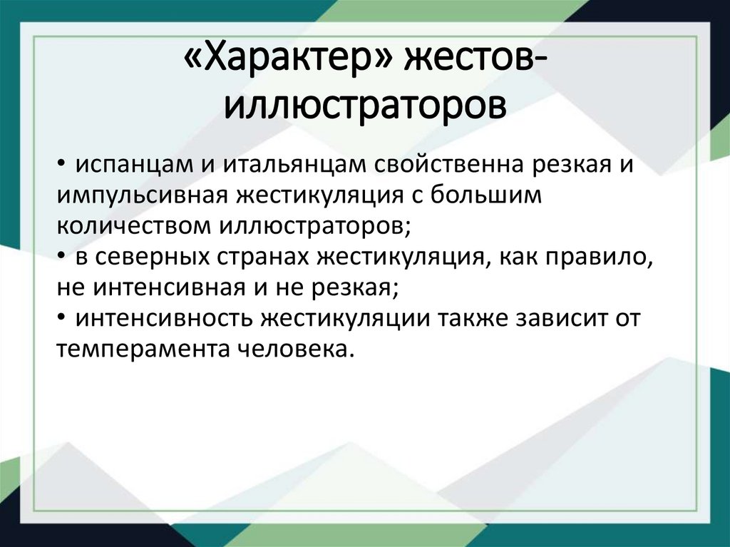 «Характер» жестовиллюстраторов• испанцам и итальянцам свойственна резкая и