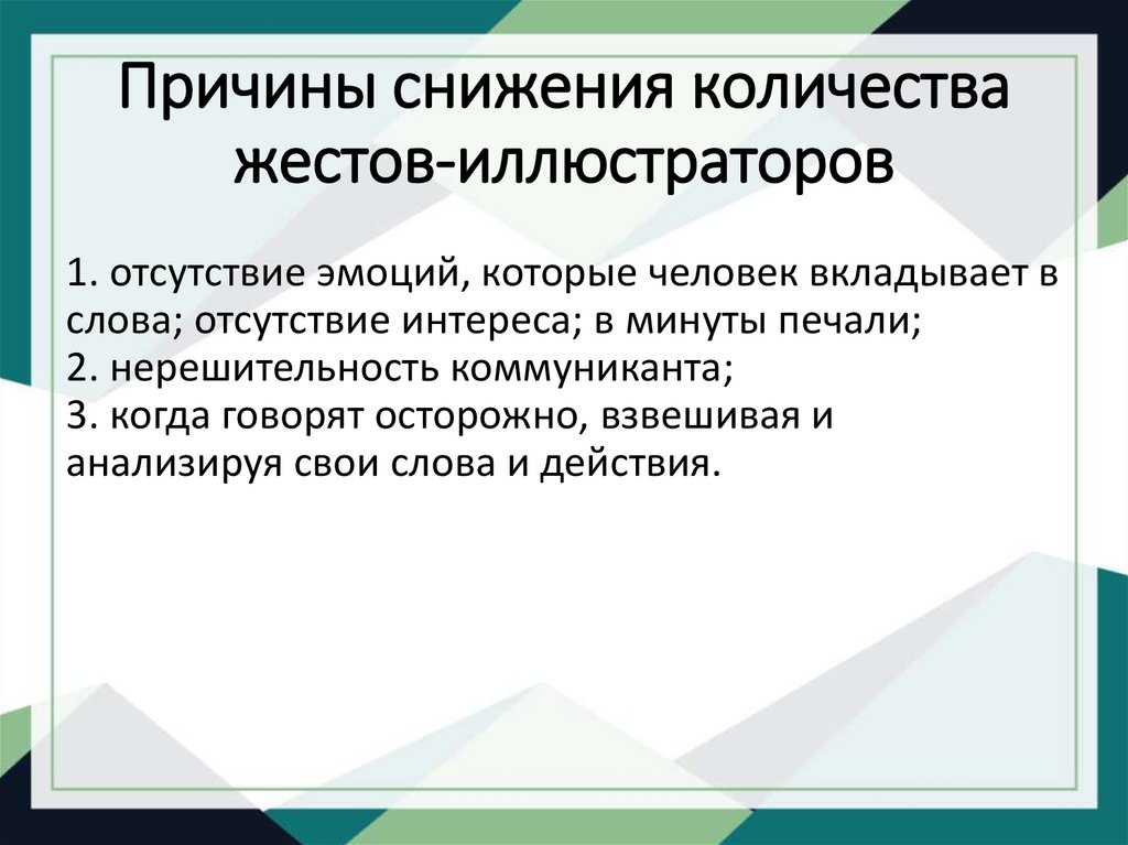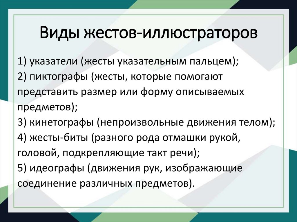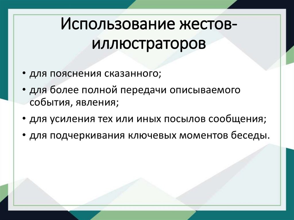 Использование жестовиллюстраторов• для пояснения сказанного;