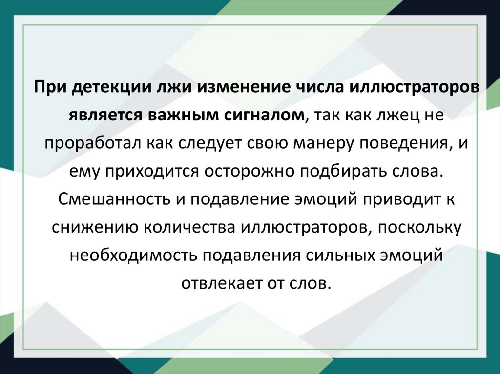 При детекции лжи изменение числа иллюстраторовявляется важным сигналом, так как лжец не