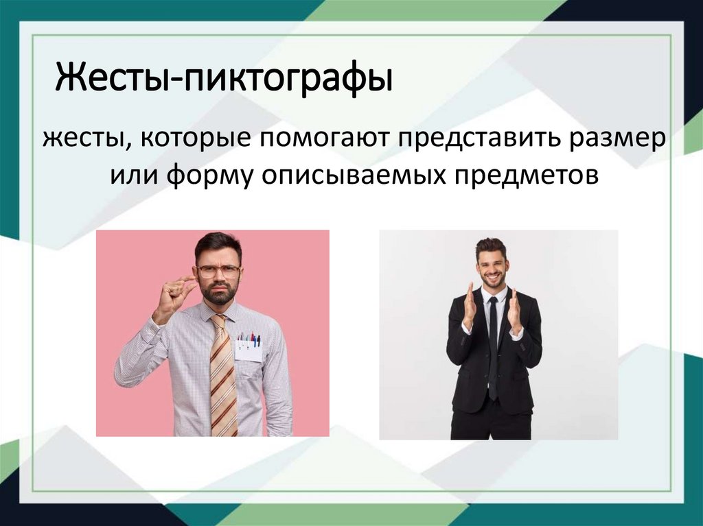Виды жестов-иллюстраторов1) указатели (жесты указательным пальцем);