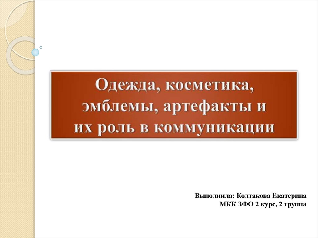 Одежда, косметика, эмблемы, артефакты и их роль в коммуникации