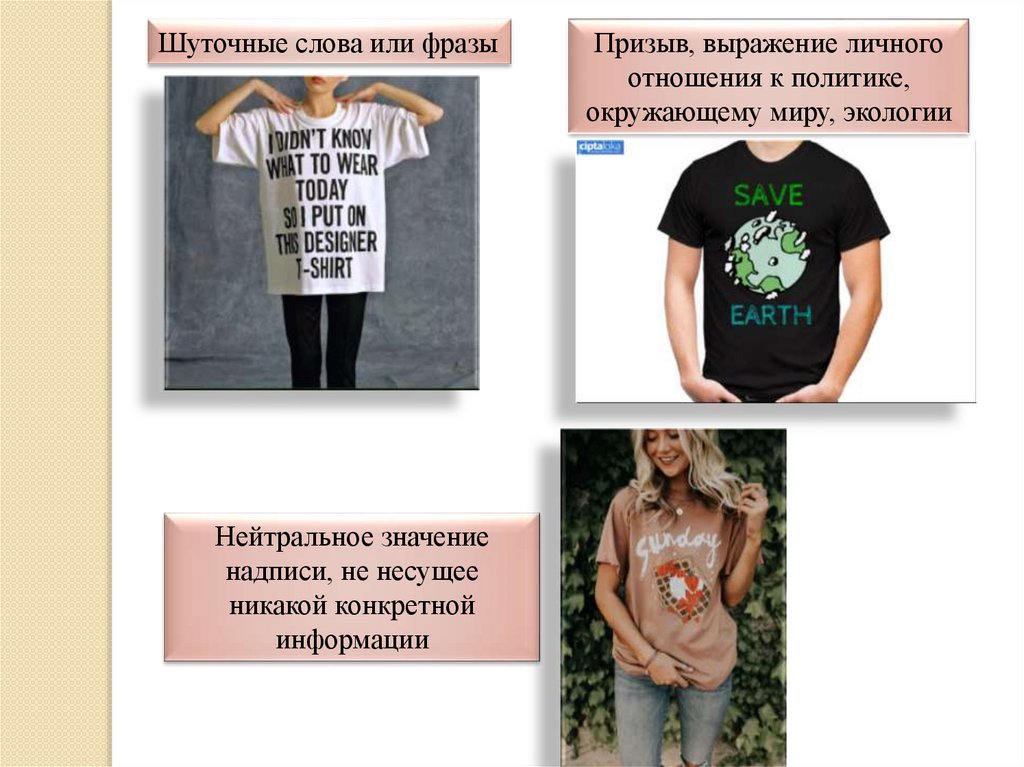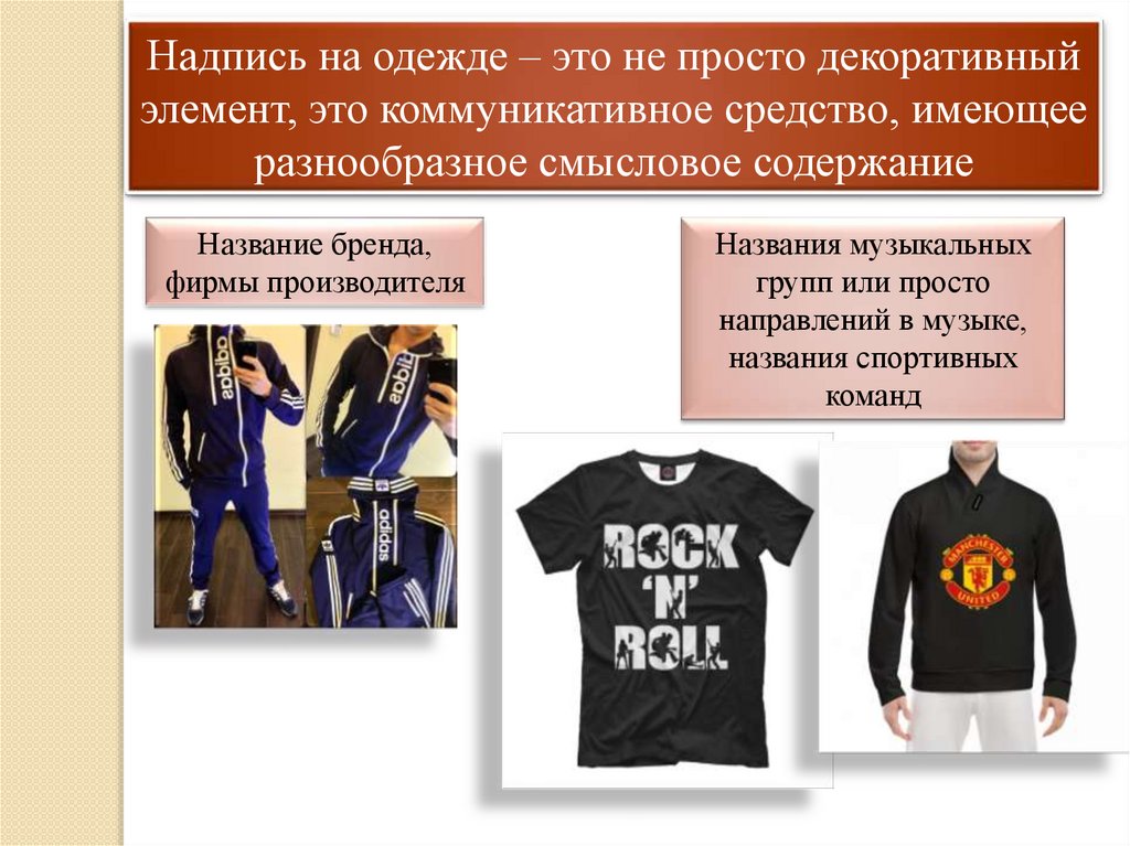 Надпись на одежде – это не просто декоративныйэлемент, это коммуникативное средство, имеющее