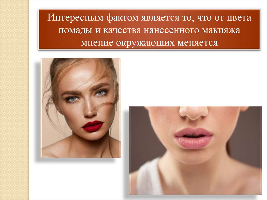 Интересным фактом является то, что от цветапомады и качества нанесенного макияжа