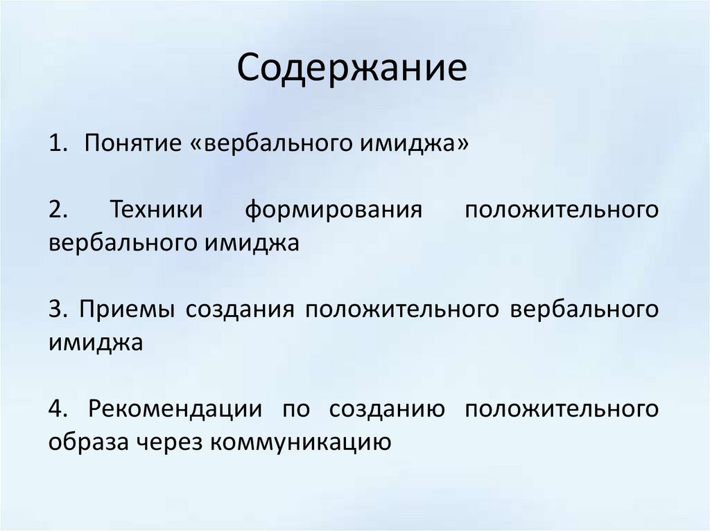 Содержание1. Понятие «вербального имиджа»