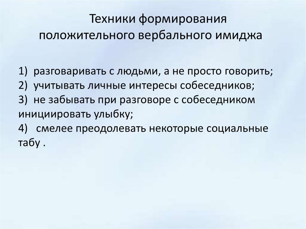 Техники формированияположительного вербального имиджа