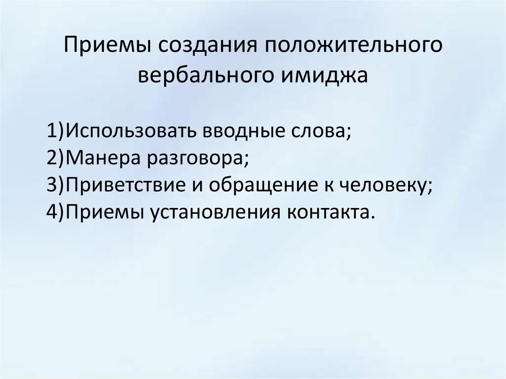 Приемы создания положительноговербального имиджа