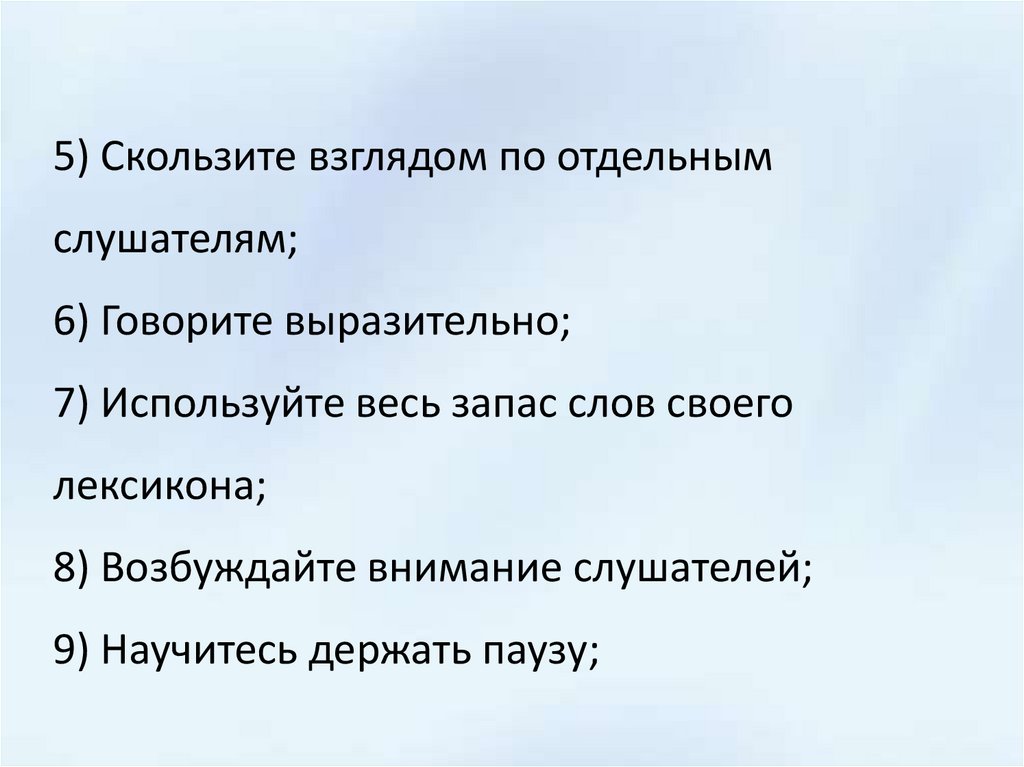 5) Скользите взглядом по отдельнымслушателям;