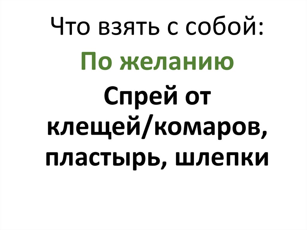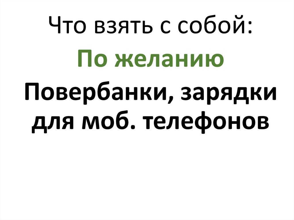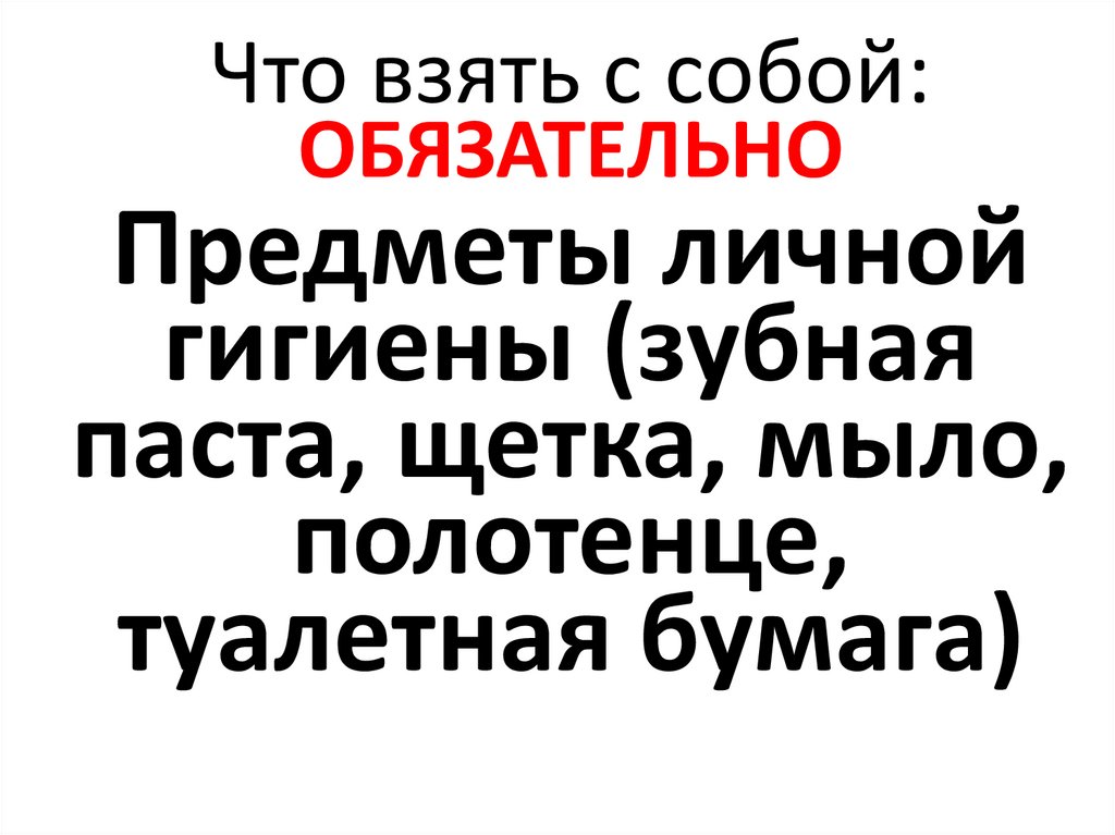 Что взять с собой:ОБЯЗАТЕЛЬНО
