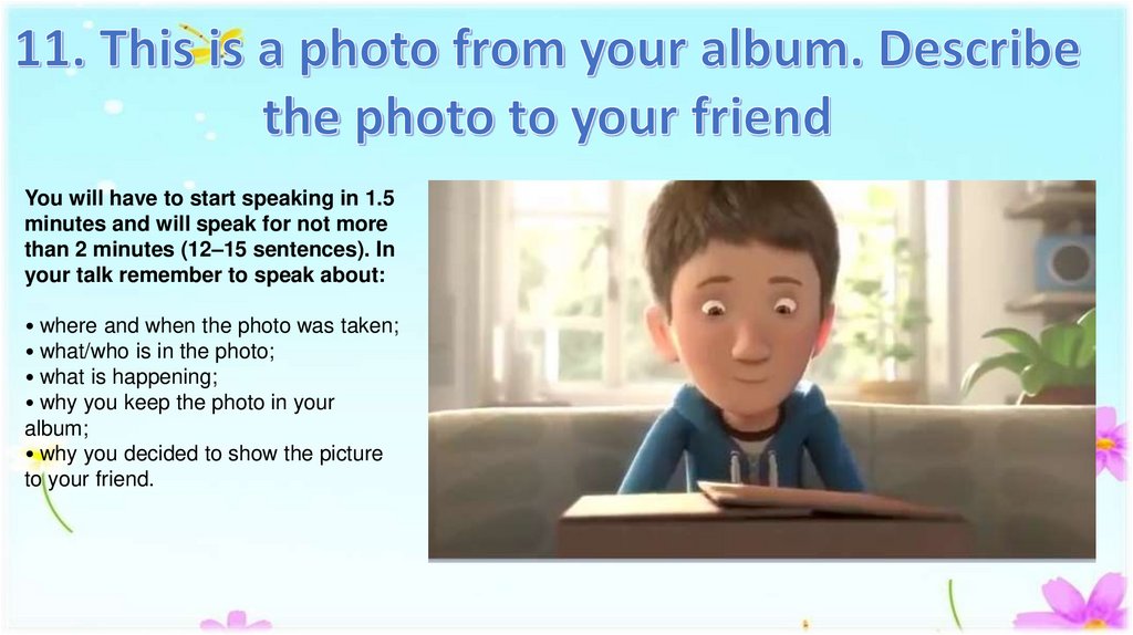 than 2 minutes (12–15 sentences). In