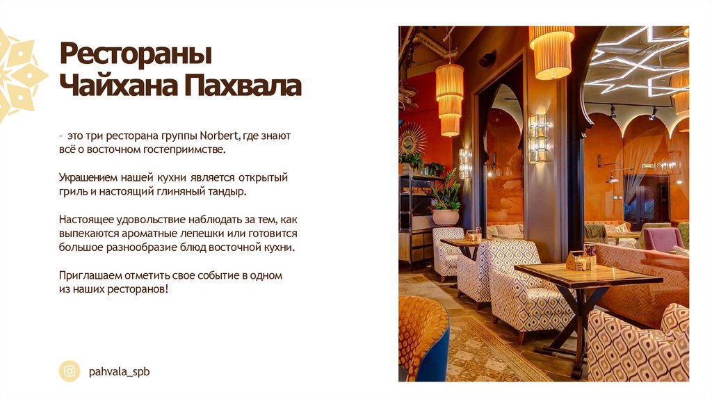 Деловые и частные мероприятия в ресторанах Чайхана Пахвала