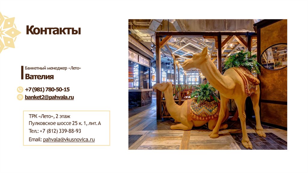 В ТРК «Лето»- Банкетный залдо 60 гостей